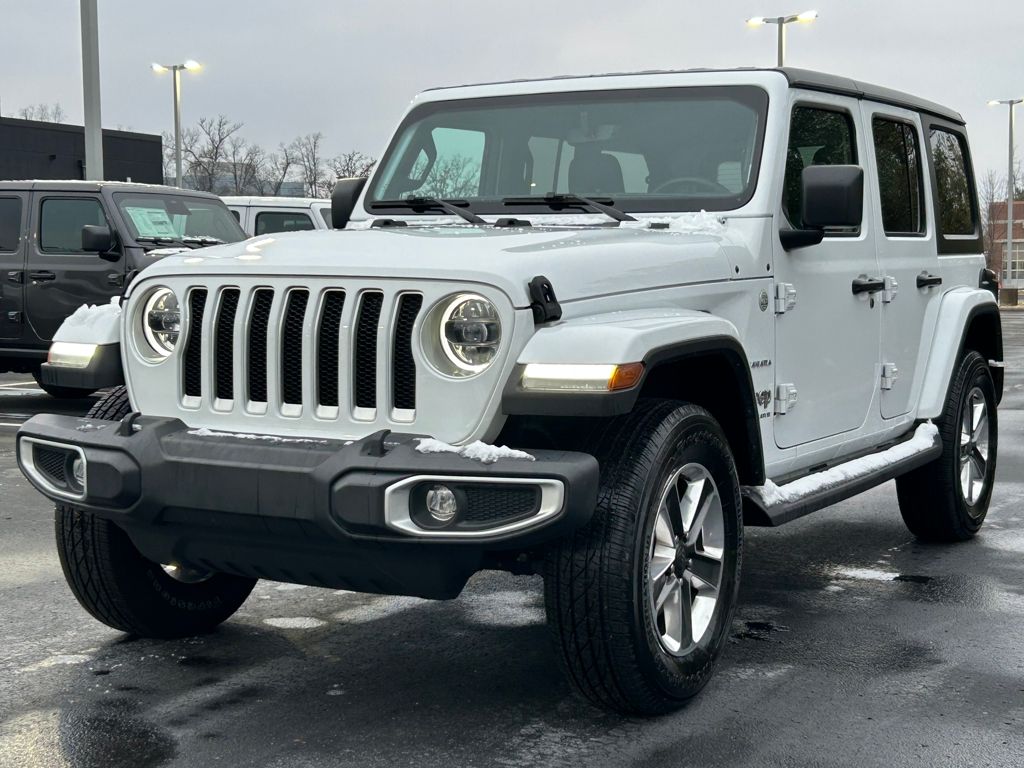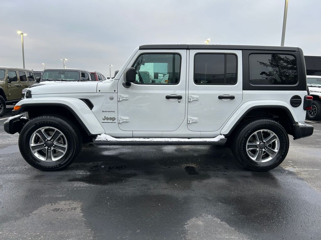 Certified. CARFAX One-Owner. Local Trade In, Non Smoker, Hands Free Bluetooth, Backup Camera, Remote Start, Wrangler Sahara, 4D Sport Utility, 2.0L I4 DOHC, 8-Speed Automatic, 4WD, Bright White Clearcoat, Black w/Premium McKinley Trimmed Seats, 3-Piece Hard Top, AM/FM radio: SiriusXM, Apple CarPlay/Android Auto, Automatic temperature control, Blind Spot & Cross Path Detection, Brake assist, Cold Weather Group, Daytime Running Lamps LED Accents, Delay-off headlights, Freedom Panel Storage Bag, Front dual zone A/C, Front fog lights, Front LED Fog Lamps, Fully automatic headlights, Heated Front Seats, Heated Steering Wheel, LED Lighting Group, LED Premium Reflector Headlamps, LED Taillamps, No Soft Top, ParkSense Rear Park Assist System, ParkView Rear Back-Up Camera, Power windows, Quick Order Package 22G Sahara, Radio: Uconnect 4C Nav w/8.4" Display, Rear Window Defroster, Rear Window Wiper/Washer, Remote keyless entry, Remote Start System, Safety Group, Security system, Side Steps, Speed control, Steering wheel mounted audio controls, Telescoping steering wheel, Tilt steering wheel, Wheels: 18" x 7.5" Polished w/Gray Spokes (DISC). Clean CARFAX. 2023 Jeep Wrangler