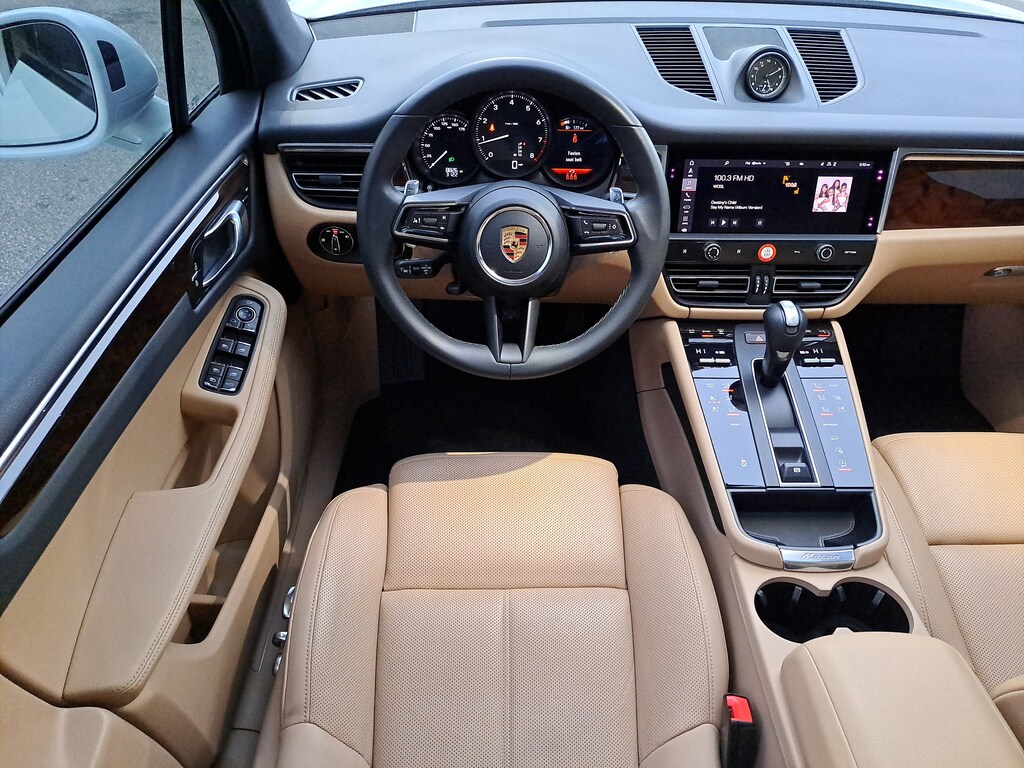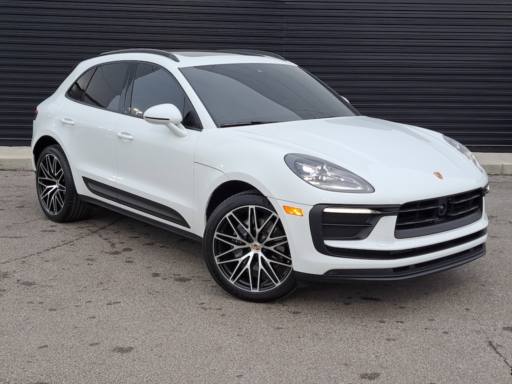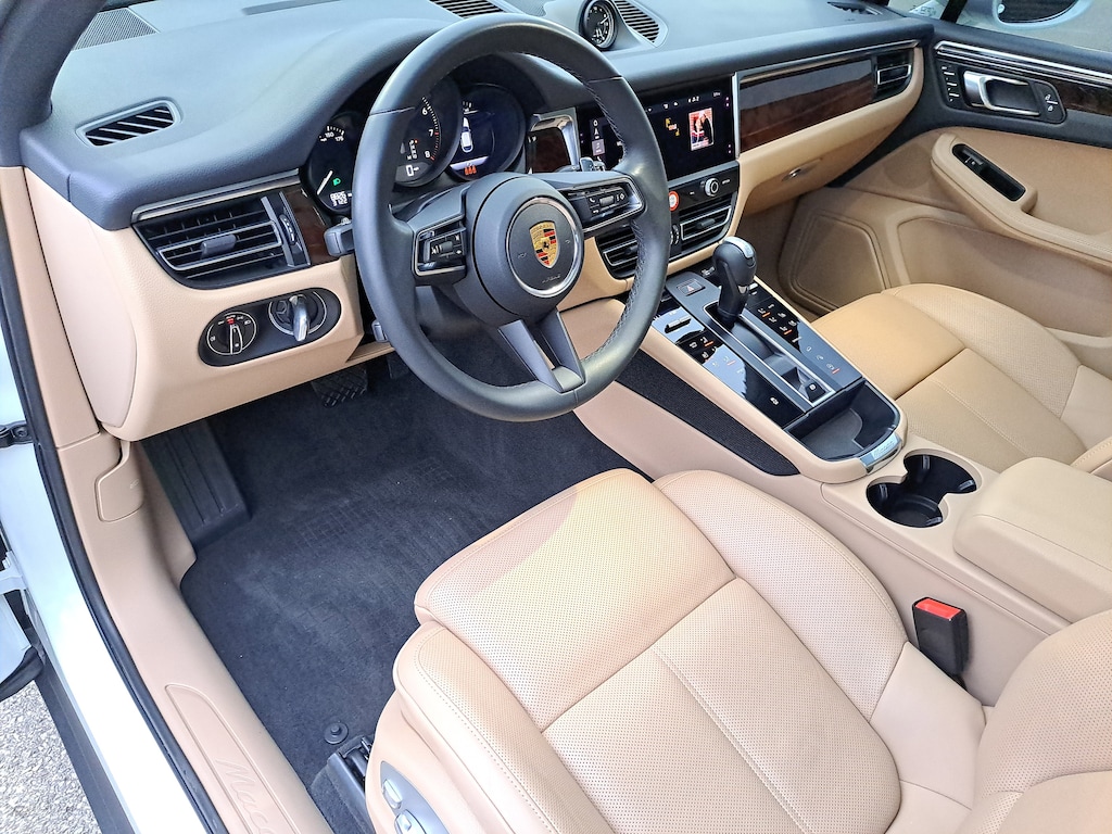 2023 Porsche Macan. 8,823 Miles. Porsche Approved Certified Pre-Owned. White Exterior. Standard Interior in Black/Mojave Beige. Premium Package Plus. 21" RS Spyder Design Wheels. Trailer Hitch without Tow Ball. Heated Steering Wheel. Roof Rails in High Gloss Black.