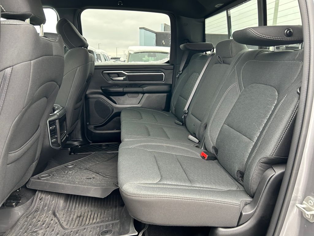 CARFAX One-Owner. Full Balance of Factory Warranty, Hands Free Bluetooth, Backup Camera, Remote Start, 1500 Big Horn/Lone Star, 4D Crew Cab, 3.6L V6 24V VVT, 8-Speed Automatic, 4WD, Billet Silver Metallic Clearcoat, Black Deluxe Cloth Bucket Seats, 115V Auxiliary Power Outlet, 2nd Row In Floor Storage Bins, 3 Rear Seat Head Restraints, 33 Gallon Fuel Tank, 4 Way Front Headrests, 400W Inverter, Accent Color Tailgate Handle, Auto High-beam Headlights, Auto Power-Folding Mirrors, Auto-Dimming Exterior Driver Mirror, Auto-Dimming Rear-View Mirror, Bed Utility Group, Big Horn Badge, Big Horn Level 1 Equipment Group, Black Exterior Mirrors, Black Interior Accents, Black Premium Power Mirrors, Black Trailer Tow Power Mirrors, Body Color Door Handles, Body Color Front Bumper, Body Color Rear Bumper w/Step Pads, Body Color Tailgate Handle, Brake assist, Bucket Seats, Convex Wide-Angle Exterior Mirror Insert, Delay-off headlights, Deluxe Cloth Bucket Seats, Exterior 115V AC Outlet, Exterior Mirrors Courtesy Lamps, Exterior Mirrors w/Heating Element, Exterior Mirrors w/Supplemental Signals, Front fog lights, Front Seat Back Map Pockets, Full Length Floor Console, Fully automatic headlights, Glove Box Lamp, Grille Surround 1 Body Color Texture 1 Black, Heated Front Seats, Heated Steering Wheel, Illuminated entry, Leather Wrapped Steering Wheel, Manual Adjust 4-Way Front Passenger Seat, Manual Folding Exterior Mirrors, Manual Telescoping Mirrors, Mirror Clearance/Running Lights, MOPAR 4 Adjustable Cargo Tie-Down Hooks, MOPAR Spray In Bedliner, ParkView Rear Back-Up Camera, Pick-Up Box Lighting, Power 2-Way Driver Lumbar Adjust, Power Adjust 8-Way Driver Seat, Power Adjustable Pedals, Power-Adjustable Convex Aux Mirrors, Quick Order Package 23Z Big Horn, Radio: Uconnect 5 W w/8.4" Display, RAM Grille Badge - Chrome, Rear 60/40 Folding Seat, Rear Center Armrest, Rear Power Sliding Window, Rear Window Defroster, Speed control, Sport Appearance Package, Steering Wheel Mounted Audio Controls, Sun Visors w/Illuminated Vanity Mirrors, Telescoping steering wheel, Tilt steering wheel, Towing Technology Group, Trailer Brake Control, Trailer Hitch Line-Up Assist, Trailer Reverse Steering Control, Trailer Tire Pressure Monitoring System, Trailer Tow Group, Trailer Tow Mirrors, Universal Garage Door Opener, Wheels: 20" x 9" Aluminum Chrome Clad (WRK). Clean CARFAX. 2025 Ram 1500