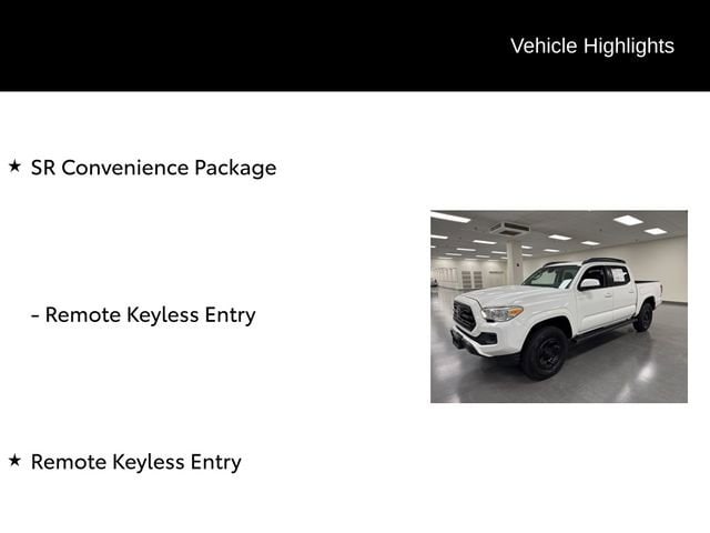 Certified. Odometer is 20008 miles below market average! Remote Keyless Entry, SR Convenience Package. Super White 2019 Toyota Tacoma SR V6 4WD 6-Speed Automatic 3.5L V6 PDI DOHC 24V LEV3-ULEV70 278hp