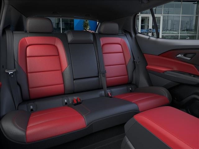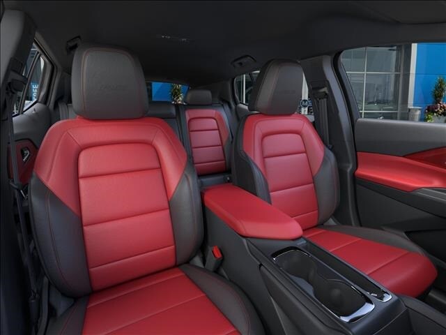 Enhancing the Equinox EV RS's dynamic presence are the striking 21-inch black painted aluminum wheels, complemented by the sporty body-color bumpers and power liftgate. The sleek exterior design, complete with a rear spoiler and auto-dimming rearview mirror, exudes a refined and modern aesthetic.