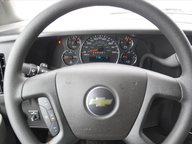 This Express 2500 also boasts a range of practical and convenient amenities, such as remote keyless entry, backup alarm, auxiliary lighting, and a heavy-duty 770 CCA maintenance-free battery. The dual-note high and low horn ensures you'll be heard on the job site, while the engine cover console with swing-out storage bin provides ample space to keep your tools and equipment organized.