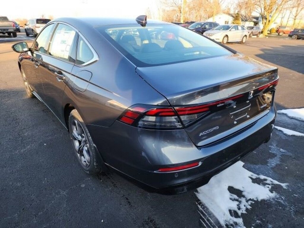 This stunning 2025 Honda Accord Hybrid EX-L features a beautiful Meteorite Gray Metallic exterior and a Black interior.