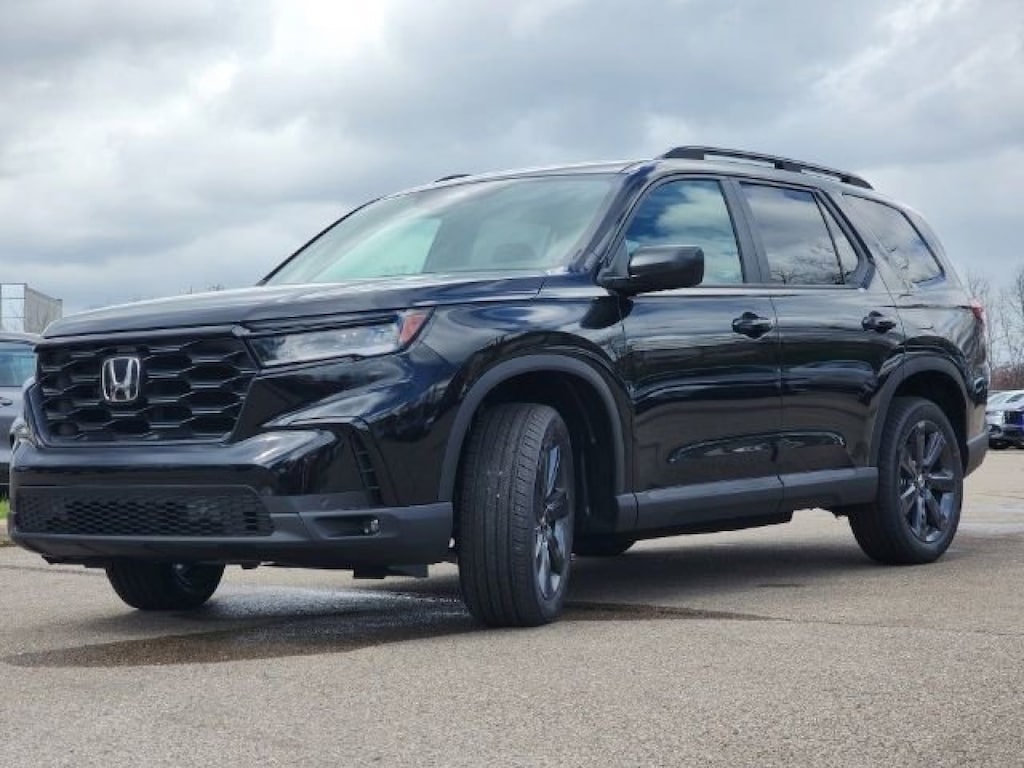 This stunning 2025 Honda Pilot Sport features a beautiful Crystal Black Pearl exterior and a Black interior.