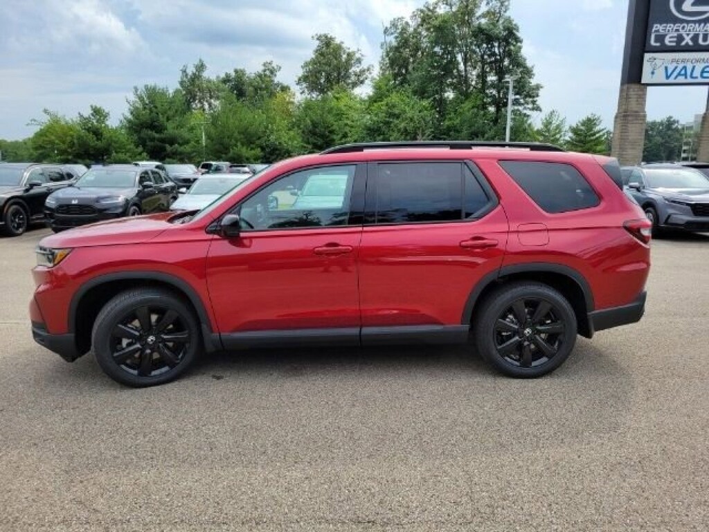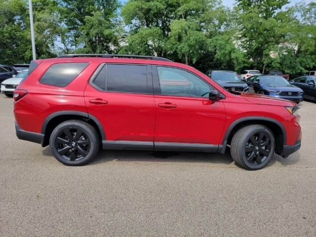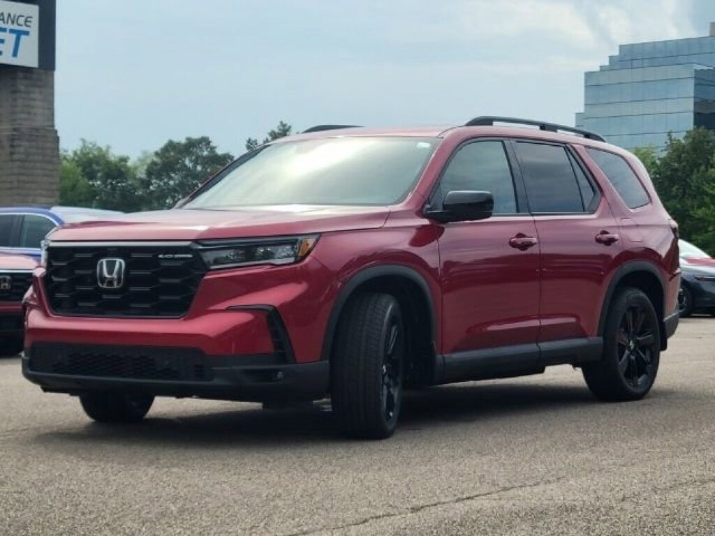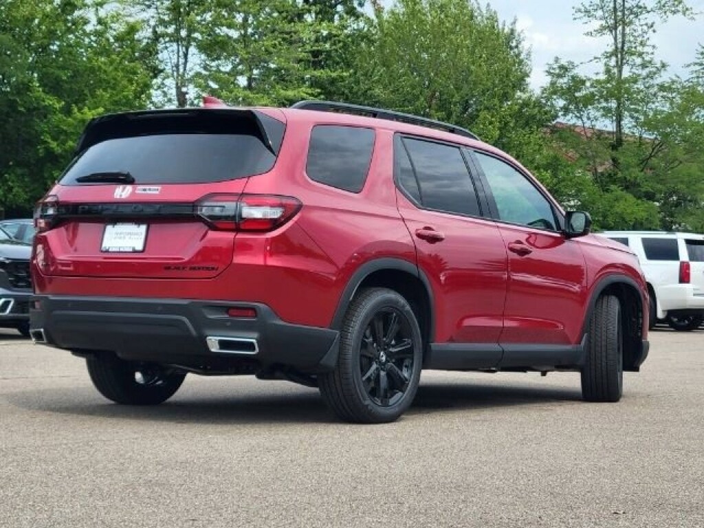 This stunning 2025 Honda Pilot Black Edition features a beautiful Radiant Red Metallic Ii exterior and a Black interior.