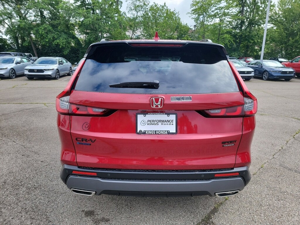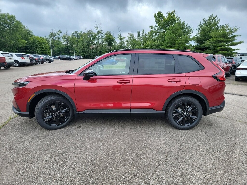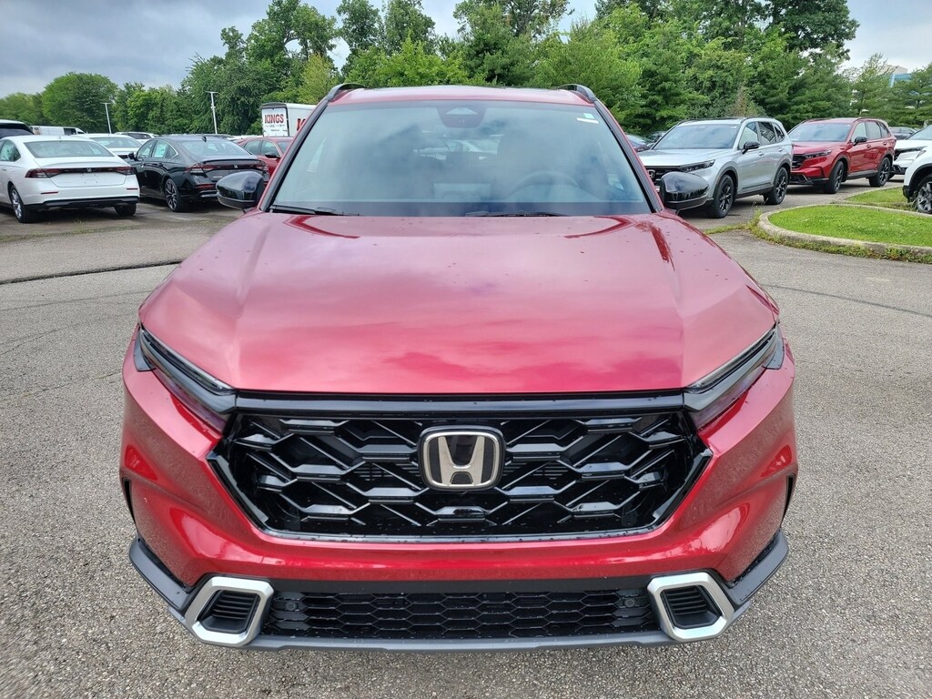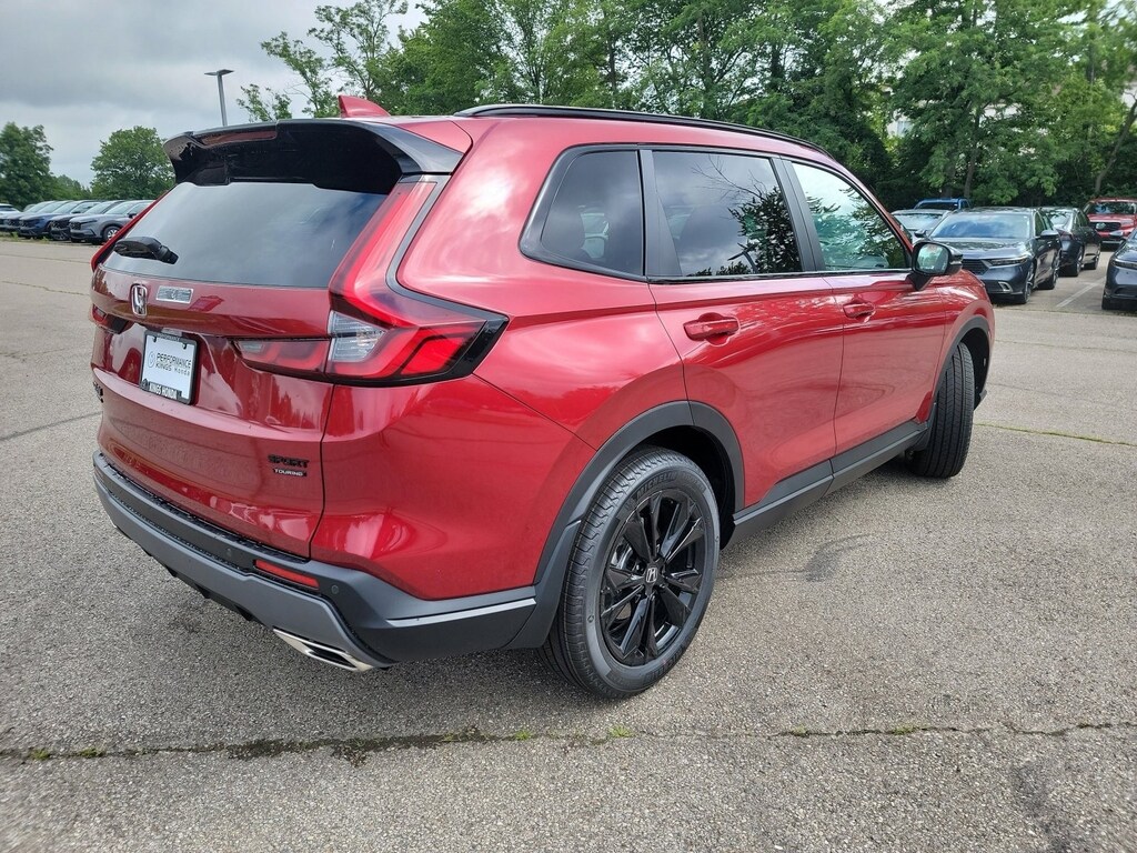 This stunning 2026 Honda CR-V Hybrid Sport Touring features a beautiful Radiant Red Metallic exterior and a Black interior.