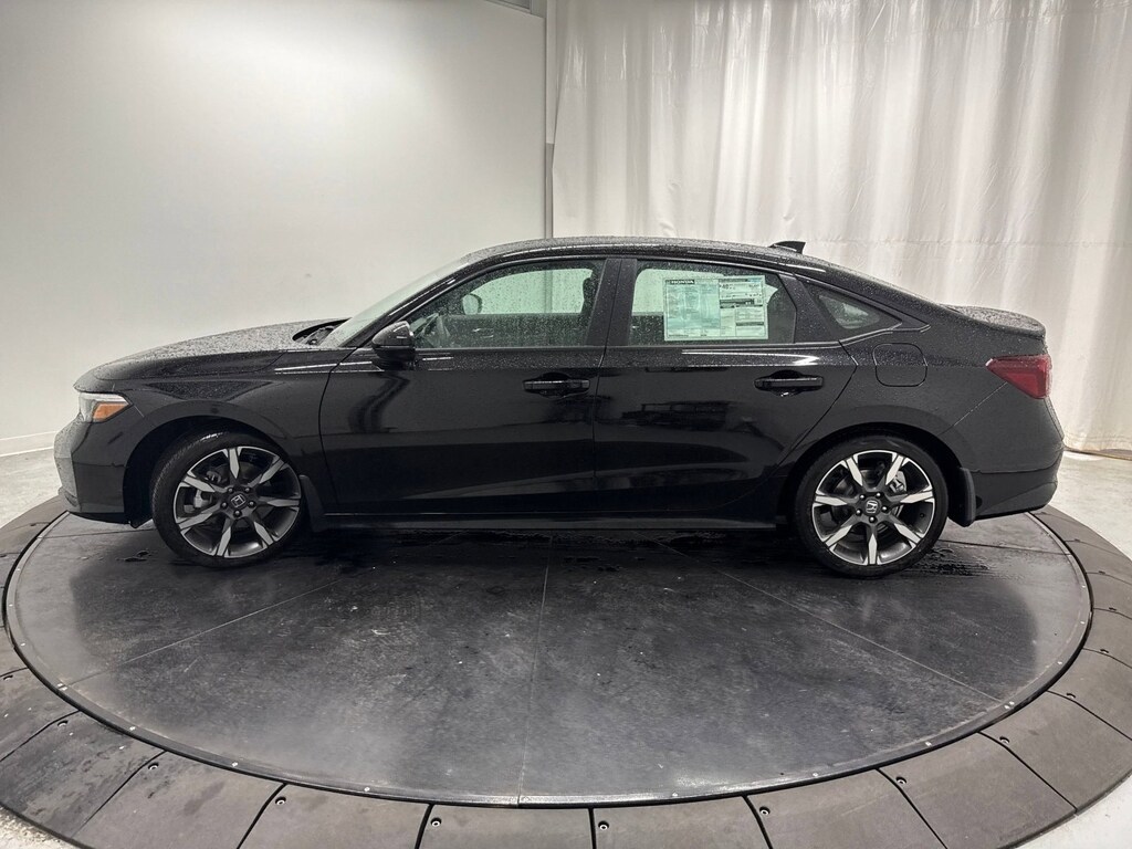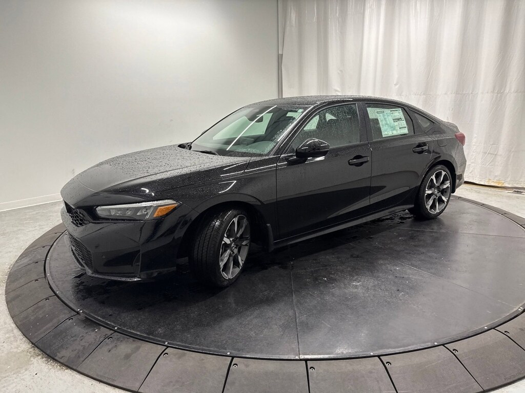 This stunning 2026 Honda Civic Sedan Hybrid Sport Touring features a beautiful Crystal Black Pearl exterior and a Black interior.