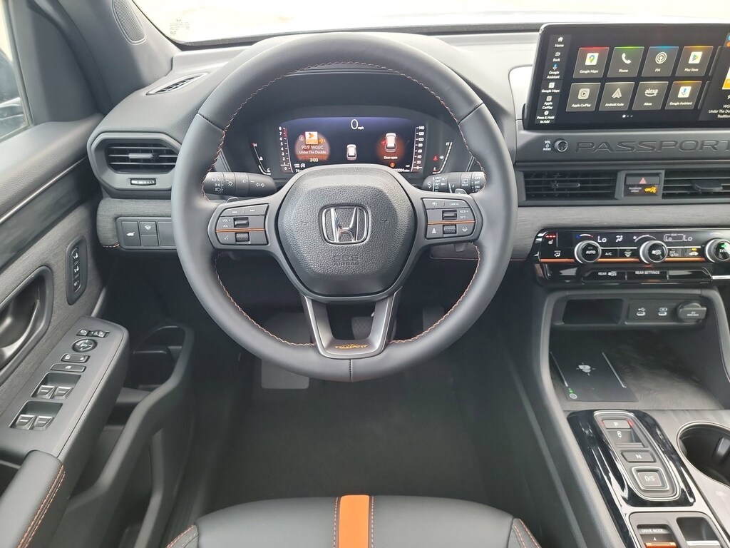 2026 Honda Passport TrailSport is loaded with convenient features like: Moonroof, Backup Camera, Heated Seats, Apple CarPlay, Power Liftgate, Lane-Departure Warning, Android Auto, Alloy-Wheels, Remote Entry, Fog Lamps.