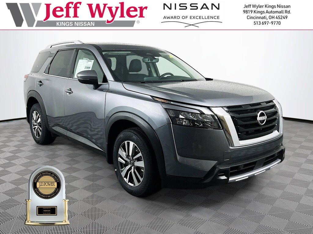 $9,985 off MSRP! Jeff Wyler Kings Nissan is pleased to offer this beautiful-looking 2025 Nissan Pathfinder SL in Gun Metallic. Well equipped with: 4WD, 3rd row seats: bench, 4-Wheel Disc Brakes, 6 Speakers, ABS brakes, Air Conditioning, Alloy wheels, AM/FM radio: SiriusXM, Auto High-beam Headlights, Auto-dimming Rear-View mirror, Automatic temperature control, Brake assist, Bumpers: body-color, Delay-off headlights, Driver door bin, Driver vanity mirror, Dual front impact airbags, Dual front side impact airbags, Electronic Stability Control, Emergency communication system, Exterior Parking Camera Rear, Four wheel independent suspension, Front anti-roll bar, Front Bucket Seats, Front Center Armrest, Front dual zone A/C, Front reading lights, Fully automatic headlights, Garage door transmitter: HomeLink, Heated door mirrors, Heated Front Bucket Seats, Heated front seats, Heated steering wheel, Illuminated entry, Knee airbag, Leather steering wheel, Leather-Appointed Seating Surfaces, Low tire pressure warning, Navigation system: NissanConnect with Navigation and Services, NissanConnect featuring Apple CarPlay and Android Auto, NissanConnect with Navigation and Services, Occupant sensing airbag, Outside temperature display, Overhead airbag, Overhead console, Panic alarm, Passenger door bin, Passenger vanity mirror, Power door mirrors, Power driver seat, Power Liftgate, Power passenger seat, Power steering, Power windows, Radio data system, Radio: AM/FM Audio System, Rear air conditioning, Rear anti-roll bar, Rear reading lights, Rear seat center armrest, Rear side impact airbag, Rear window defroster, Rear window wiper, Reclining 3rd row seat, Remote keyless entry, Security system, Speed control, Speed-sensing steering, Split folding rear seat, Spoiler, Steering wheel mounted audio controls, Tachometer, Telescoping steering wheel, Tilt steering wheel, Traction control, Trip computer, Turn signal indicator mirrors, Variably intermittent wipers, and Wheels: 18" x 8J Machined Alloy. 21/27 City/Highway MPGWyler Family First Package Includes: NanoCure Appearance Protection: Exterior & Interior Chemical Sealant Applied to Protect Against Environmental Hazards (7 Year Warranty Coverage). Pulse- Rear end Collision Avoidance System Theft Deterrent Strategy gives you 5 Years of Coverage against vehicle Theft, Offering up to a $5,000 benefit. Used vehicles 10 years of age or newer with less than 100,000 miles are eligible for the Wyler Assurance Program, but eligible vehicles must pass our reconditioning process and multi-point inspection. Provided the vehicle passes inspection, vehicles will be eligible for the 6 month/6,000 mile limited warranty. The 6 month/6,000 mile limited warranty is NOT available on AS-IS vehicles, wholesale vehicles, lease buyback/pass-thru vehicles or un-inspected vehicles. Note that this program can also apply to vehicles where the remaining factory coverage is less than 6 months or 6,000 miles. Please check the Federal Trade Commission (FTC) Buyers guide on the vehicle for full details as to whether or not warranty coverage may apply. Contact Dealer for additional details. The Wyler Assurance 6 month/6,000 Mile limited warranty ends 6 months from the date of the Retail Purchase Agreement (BUYERS ORDER) or when the vehicle's odometer registers 6,000 additional miles to the mileage listed on the BUYERS ORDER, whichever comes first. Your Deductible - The warranty holder on your contract pays the first $100 of each covered repair. Price includes: $5000 - Nissan Customer Cash. Exp. 02/02/2026