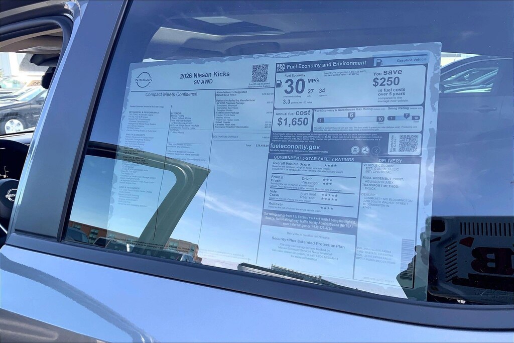 $2,580 off MSRP! Jeff Wyler Kings Nissan is excited to offer this superb-looking 2026 Nissan Kicks SV in Gun Metallic. Well equipped with: Cold Weather Package (Heated Front Seats, Heated Mirrors, and Rear Floor Heater Ducts), SV Premium Package (Illuminated Driver and Passenger Sun Visors, Panoramic Moonroof, and Sunglass Holder), 17" Alloy Wheels, 4 Speakers, 4-Wheel Disc Brakes, ABS brakes, Air Conditioning, Alloy wheels, AM/FM radio, Auto High-beam Headlights, Automatic temperature control, Blind Spot Warning, Brake assist, Bumpers: body-color, Carpeted Floor Mats, Cloth Seat Trim, Driver door bin, Driver vanity mirror, Dual front impact airbags, Dual front side impact airbags, Electronic Stability Control, Emergency communication system, Exterior Parking Camera Rear, Four wheel independent suspension, Front anti-roll bar, Front Bucket Seats, Front Center Armrest, Front reading lights, Fully automatic headlights, Illuminated entry, Knee airbag, Low tire pressure warning, NissanConnect featuring Apple CarPlay and Android Auto, Occupant sensing airbag, Outside temperature display, Overhead airbag, Panic alarm, Panoramic Headliner Illumination, Passenger door bin, Passenger vanity mirror, Power door mirrors, Power steering, Power windows, Radio data system, Radio: AM/FM/SiriusXM Audio System, Rear anti-roll bar, Rear reading lights, Rear side impact airbag, Rear window defroster, Rear window wiper, Remote keyless entry, Security system, Speed control, Speed-sensing steering, Splash Guards, Split folding rear seat, Spoiler, Sport steering wheel, Steering wheel mounted audio controls, Tachometer, Telescoping steering wheel, Tilt steering wheel, Traction control, Trip computer, and Variably intermittent wipers. 27/34 City/Highway MPGWyler Family First Package Includes: NanoCure Appearance Protection: Exterior & Interior Chemical Sealant Applied to Protect Against Environmental Hazards (7 Year Warranty Coverage). Pulse- Rear end Collision Avoidance System Theft Deterrent Strategy gives you 5 Years of Coverage against vehicle Theft, Offering up to a $5,000 benefit. Used vehicles 10 years of age or newer with less than 100,000 miles are eligible for the Wyler Assurance Program, but eligible vehicles must pass our reconditioning process and multi-point inspection. Provided the vehicle passes inspection, vehicles will be eligible for the 6 month/6,000 mile limited warranty. The 6 month/6,000 mile limited warranty is NOT available on AS-IS vehicles, wholesale vehicles, lease buyback/pass-thru vehicles or un-inspected vehicles. Note that this program can also apply to vehicles where the remaining factory coverage is less than 6 months or 6,000 miles. Please check the Federal Trade Commission (FTC) Buyers guide on the vehicle for full details as to whether or not warranty coverage may apply. Contact Dealer for additional details. The Wyler Assurance 6 month/6,000 Mile limited warranty ends 6 months from the date of the Retail Purchase Agreement (BUYERS ORDER) or when the vehicle's odometer registers 6,000 additional miles to the mileage listed on the BUYERS ORDER, whichever comes first. Your Deductible - The warranty holder on your contract pays the first $100 of each covered repair. Price includes: $1000 - Nissan Customer Cash. Exp. 03/31/2026