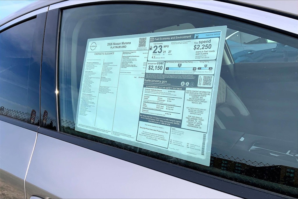 $7,724 off MSRP! Jeff Wyler Kings Nissan is very proud to offer this wonderful-looking 2026 Nissan Murano Platinum in Champagne Silver Metallic. Well equipped with: Cargo Package (3-Position Cargo Area Protector, Cargo Net, First Aid Kit, and Retractable Cargo Cover), 9-Speed Automatic, AWD, 10 Speakers, 21" Alloy Wheels, 4-Wheel Disc Brakes, ABS brakes, Air Conditioning, Alloy wheels, AM/FM radio: SiriusXM w/360L, Auto High-beam Headlights, Auto tilt-away steering wheel, Auto-dimming Rear-View mirror, Automatic temperature control, Brake assist, Bumpers: body-color, Carpeted Floor & Cargo Mats, Child-Seat-Sensing Airbag, Compass, Delay-off headlights, Driver door bin, Driver vanity mirror, Dual front impact airbags, Dual front side impact airbags, Electronic Stability Control, Emergency communication system: NissanConnect Services, Exterior Ground Lighting, Four wheel independent suspension, Front anti-roll bar, Front Bucket Seats, Front Center Armrest, Front dual zone A/C, Front reading lights, Fully automatic headlights, Garage door transmitter: HomeLink, Heads-Up Display, Heated & Ventilated Front Bucket Seats w/Massage, Heated door mirrors, Heated front seats, Heated rear seats, Heated steering wheel, Illuminated entry, Illuminated Kick Plates, Knee airbag, Low tire pressure warning, Memory seat, Navigation system: NissanConnect with Navigation and Services, Occupant sensing airbag, Outside temperature display, Overhead airbag, Overhead console, Painted Splash Guards, Panic alarm, Passenger door bin, Passenger vanity mirror, Power door mirrors, Power driver seat, Power Liftgate, Power moonroof: Panoramic, Power passenger seat, Power steering, Power windows, Quilted Semi-Aniline Leather-Appointed Seat Trim, Radio data system, Radio: NissanConnect w/Hybrid Radio, Rain sensing wipers, Rear anti-roll bar, Rear reading lights, Rear seat center armrest, Rear side impact airbag, Rear window defroster, Rear window wiper, Remote keyless entry, Security system, Speed control, Speed-Sensitive Wipers, Split folding rear seat, Spoiler, Steering wheel memory, Steering wheel mounted audio controls, Tablet Holder, Tachometer, Telescoping steering wheel, Tilt steering wheel, Traction control, Trip computer, Turn signal indicator mirrors, Variably intermittent wipers, Ventilated front seats, and Wireless Apple CarPlay/Wireless Android Auto. 21/27 City/Highway MPGWyler Family First Package Includes: NanoCure Appearance Protection: Exterior & Interior Chemical Sealant Applied to Protect Against Environmental Hazards (7 Year Warranty Coverage). Pulse- Rear end Collision Avoidance System Theft Deterrent Strategy gives you 5 Years of Coverage against vehicle Theft, Offering up to a $5,000 benefit. Used vehicles 10 years of age or newer with less than 100,000 miles are eligible for the Wyler Assurance Program, but eligible vehicles must pass our reconditioning process and multi-point inspection. Provided the vehicle passes inspection, vehicles will be eligible for the 6 month/6,000 mile limited warranty. The 6 month/6,000 mile limited warranty is NOT available on AS-IS vehicles, wholesale vehicles, lease buyback/pass-thru vehicles or un-inspected vehicles. Note that this program can also apply to vehicles where the remaining factory coverage is less than 6 months or 6,000 miles. Please check the Federal Trade Commission (FTC) Buyers guide on the vehicle for full details as to whether or not warranty coverage may apply. Contact Dealer for additional details. The Wyler Assurance 6 month/6,000 Mile limited warranty ends 6 months from the date of the Retail Purchase Agreement (BUYERS ORDER) or when the vehicle's odometer registers 6,000 additional miles to the mileage listed on the BUYERS ORDER, whichever comes first. Your Deductible - The warranty holder on your contract pays the first $100 of each covered repair. Price includes: $4000 - Nissan Customer Cash. Exp. 02/02/2026