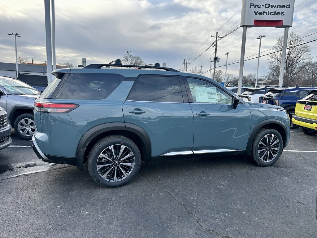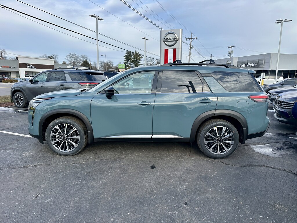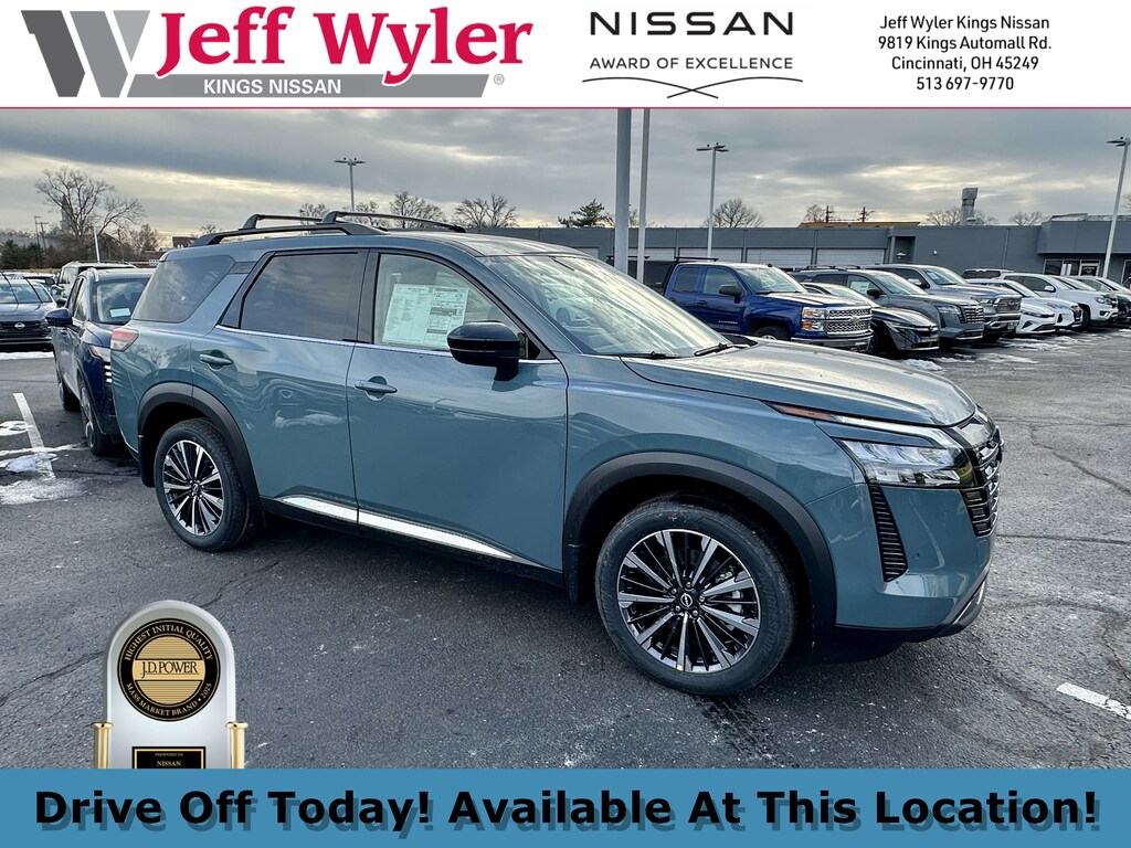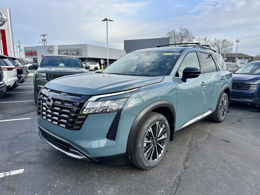 $7,643 off MSRP! Jeff Wyler Kings Nissan is proud to offer this superb-looking 2026 Nissan Pathfinder Platinum in Baltic Teal. Well equipped with: Cargo Package (Cargo Area Protector, Cargo Net, and First Aid), 4WD, 13 Speakers, 3rd row seats: bench, 4-Piece Black Splash Guards, 4-Wheel Disc Brakes, ABS brakes, Air Conditioning, Alloy wheels, AM/FM radio: SiriusXM w/360L, Auto High-beam Headlights, Auto tilt-away steering wheel, Auto-dimming Rear-View mirror, Automatic temperature control, Bench Seat Carpeted Floor Mats, Bodyside moldings, Bose Premium Audio System, Brake assist, Bumpers: body-color, Climate Controlled Front Bucket Seats, Cross Bars, Delay-off headlights, Driver door bin, Driver vanity mirror, Dual front impact airbags, Dual front side impact airbags, Electronic Stability Control, Emergency communication system: NissanConnect Services, Four wheel independent suspension, Front anti-roll bar, Front Bucket Seats, Front Center Armrest, Front dual zone A/C, Front reading lights, Fully automatic headlights, Garage door transmitter: HomeLink, Heads-Up Display, Heated door mirrors, Heated front seats, Heated rear seats, Heated steering wheel, Illuminated entry, Knee airbag, Low tire pressure warning, Memory seat, NissanConnect featuring Apple CarPlay and Android Auto, Occupant sensing airbag, Outside temperature display, Overhead airbag, Overhead console, Panic alarm, Passenger door bin, Passenger vanity mirror, Power door mirrors, Power driver seat, Power Liftgate, Power moonroof, Power passenger seat, Power steering, Power windows, Premium Paint, Radio data system, Radio: AM/FM Audio System with NissanConnect, Rain sensing wipers, Rear air conditioning, Rear anti-roll bar, Rear reading lights, Rear seat center armrest, Rear side impact airbag, Rear window defroster, Rear window wiper, Reclining 3rd row seat, Remote keyless entry, Security system, Semi-Aniline Leather-Appointed Seating Surfaces, Speed control, Speed-sensing steering, Speed-Sensitive Wipers, Split folding rear seat, Spoiler, Steering wheel memory, Steering wheel mounted audio controls, Tachometer, Telescoping steering wheel, Tilt steering wheel, Traction control, Trip computer, Turn signal indicator mirrors, Variably intermittent wipers, Ventilated front seats, and Wheels: 20" Machined Alloy.Wyler Family First Package Includes: NanoCure Appearance Protection: Exterior & Interior Chemical Sealant Applied to Protect Against Environmental Hazards (7 Year Warranty Coverage). Pulse- Rear end Collision Avoidance System Theft Deterrent Strategy gives you 5 Years of Coverage against vehicle Theft, Offering up to a $5,000 benefit. Used vehicles 10 years of age or newer with less than 100,000 miles are eligible for the Wyler Assurance Program, but eligible vehicles must pass our reconditioning process and multi-point inspection. Provided the vehicle passes inspection, vehicles will be eligible for the 6 month/6,000 mile limited warranty. The 6 month/6,000 mile limited warranty is NOT available on AS-IS vehicles, wholesale vehicles, lease buyback/pass-thru vehicles or un-inspected vehicles. Note that this program can also apply to vehicles where the remaining factory coverage is less than 6 months or 6,000 miles. Please check the Federal Trade Commission (FTC) Buyers guide on the vehicle for full details as to whether or not warranty coverage may apply. Contact Dealer for additional details. The Wyler Assurance 6 month/6,000 Mile limited warranty ends 6 months from the date of the Retail Purchase Agreement (BUYERS ORDER) or when the vehicle's odometer registers 6,000 additional miles to the mileage listed on the BUYERS ORDER, whichever comes first. Your Deductible - The warranty holder on your contract pays the first $100 of each covered repair. Price includes: $3500 - Nissan Customer Cash. Exp. 05/04/2026
