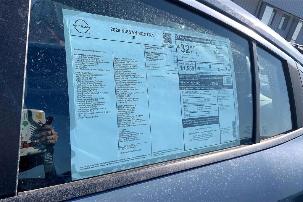 $2,044 off MSRP! Jeff Wyler Kings Nissan is pumped up to offer this stunning 2026 Nissan Sentra SL in Atlantic Gray Metallic. Well equipped with: Floor Mat Package, CVT with Xtronic, Quilted Gray Artificial Leather, 17" Machined Alloy Wheels, 4-Wheel Disc Brakes, 8 Speakers, ABS brakes, Air Conditioning, Alloy wheels, AM/FM radio: Sirius, Auto High-beam Headlights, Auto-dimming Rear-View mirror, Automatic temperature control, Brake assist, Bumpers: body-color, Delay-off headlights, Driver door bin, Driver vanity mirror, Dual front impact airbags, Dual front side impact airbags, Electronic Stability Control, Emergency communication system: NissanConnect(R) Services powered by SiriusXM(R), Four wheel independent suspension, Front anti-roll bar, Front Bucket Seats, Front Center Armrest, Front dual zone A/C, Front reading lights, Fully automatic headlights, Garage door transmitter, Heated door mirrors, Heated Front Bucket Seats, Heated front seats, Heated steering wheel, Illuminated entry, Illuminated Kick Plates, Knee airbag, Leather steering wheel, Low tire pressure warning, Occupant sensing airbag, Outside temperature display, Overhead airbag, Overhead console, Panic alarm, Passenger door bin, Passenger vanity mirror, Power door mirrors, Power driver seat, Power moonroof, Power steering, Power windows, Premium Paint, Quilted TailorFit Synthetic Leather Seat Trim, Radio data system, Radio: AM/FM with RDS/MP3, Rear anti-roll bar, Rear seat center armrest, Rear side impact airbag, Rear window defroster, Remote keyless entry, Security system, Speed control, Speed-sensing steering, Split folding rear seat, Steering wheel mounted audio controls, Tachometer, Telescoping steering wheel, Tilt steering wheel, Traction control, Trip computer, Turn signal indicator mirrors, Variably intermittent wipers, and Wireless Apple CarPlay/Wireless Android Auto. 30/38 City/Highway MPGWyler Family First Package Includes: NanoCure Appearance Protection: Exterior & Interior Chemical Sealant Applied to Protect Against Environmental Hazards (7 Year Warranty Coverage). Pulse- Rear end Collision Avoidance System Theft Deterrent Strategy gives you 5 Years of Coverage against vehicle Theft, Offering up to a $5,000 benefit. Used vehicles 10 years of age or newer with less than 100,000 miles are eligible for the Wyler Assurance Program, but eligible vehicles must pass our reconditioning process and multi-point inspection. Provided the vehicle passes inspection, vehicles will be eligible for the 6 month/6,000 mile limited warranty. The 6 month/6,000 mile limited warranty is NOT available on AS-IS vehicles, wholesale vehicles, lease buyback/pass-thru vehicles or un-inspected vehicles. Note that this program can also apply to vehicles where the remaining factory coverage is less than 6 months or 6,000 miles. Please check the Federal Trade Commission (FTC) Buyers guide on the vehicle for full details as to whether or not warranty coverage may apply. Contact Dealer for additional details. The Wyler Assurance 6 month/6,000 Mile limited warranty ends 6 months from the date of the Retail Purchase Agreement (BUYERS ORDER) or when the vehicle's odometer registers 6,000 additional miles to the mileage listed on the BUYERS ORDER, whichever comes first. Your Deductible - The warranty holder on your contract pays the first $100 of each covered repair. Price includes: $500 - Nissan MY26 Sentra Customer Cash (All Markets) - February. Exp. 03/02/2026