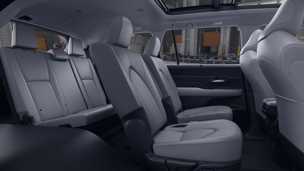• 7-passenger seating with second-row fold-down captain's chairs and fold-down inboard armrests, adjustable headrests and two cup holders mounted on the floor; and 60/40 split, fold-down third-row seats with sliding headrests and recline function.