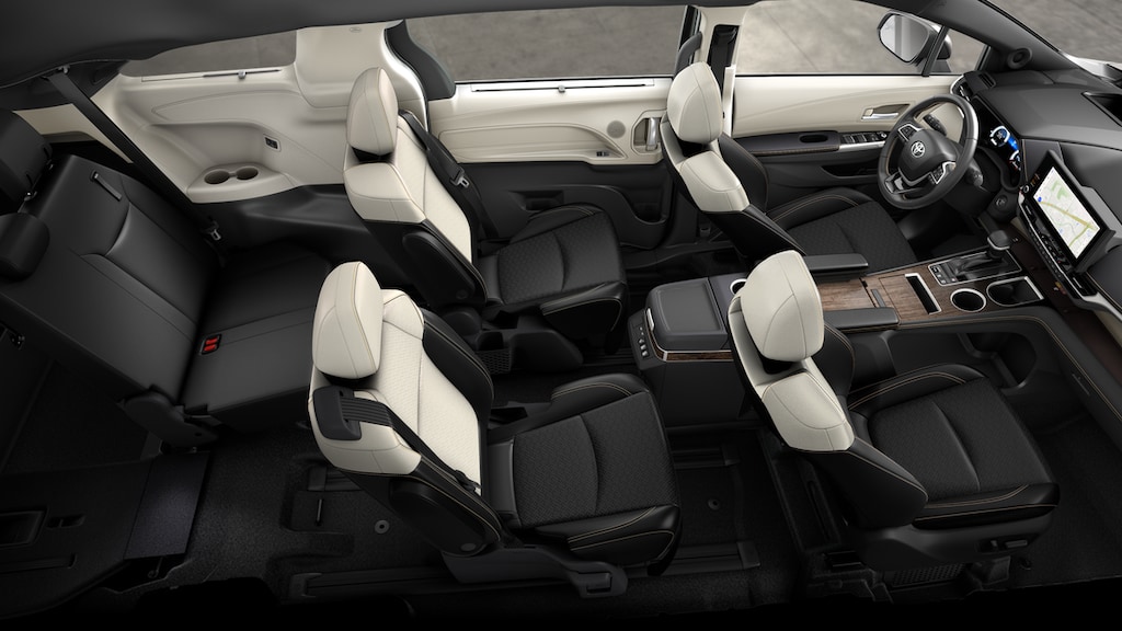 • 7-passenger seating with heated premium leather-trimmed second-row-seat captain's chairs with super-long-slide feature and ottomanssienna_ottomansienna_ottoman].