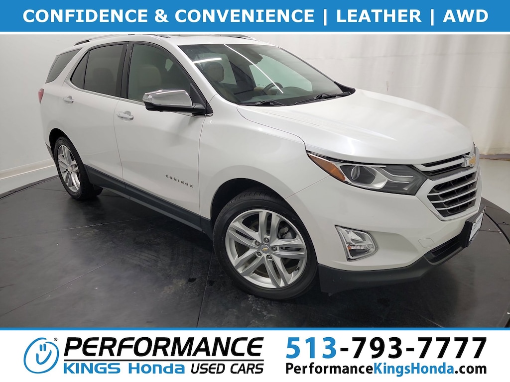 This stunning 2019 Chevrolet Equinox Premier features a beautiful Iridescent Pearl Tricoat exterior and a Jet Black/brandy interior.