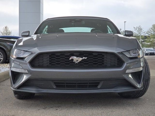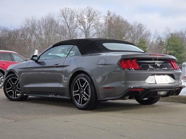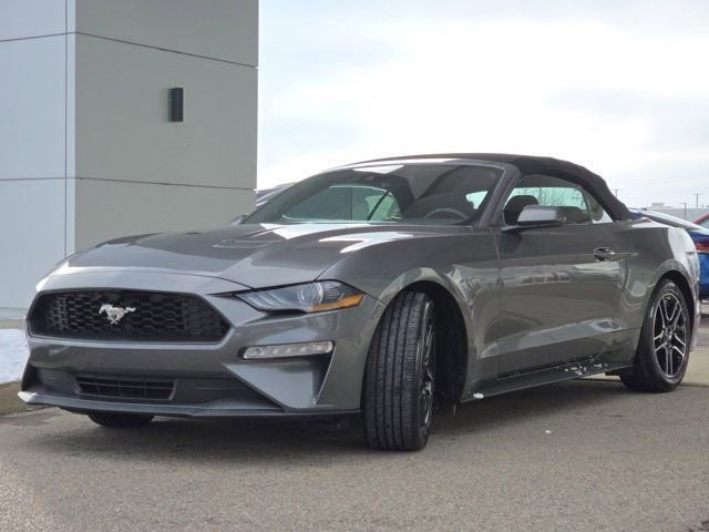 This stunning 2021 Ford Mustang EcoBoost located in the Kings Automall features a beautiful Carbonized Gray Metallic exterior and a Gray interior.
