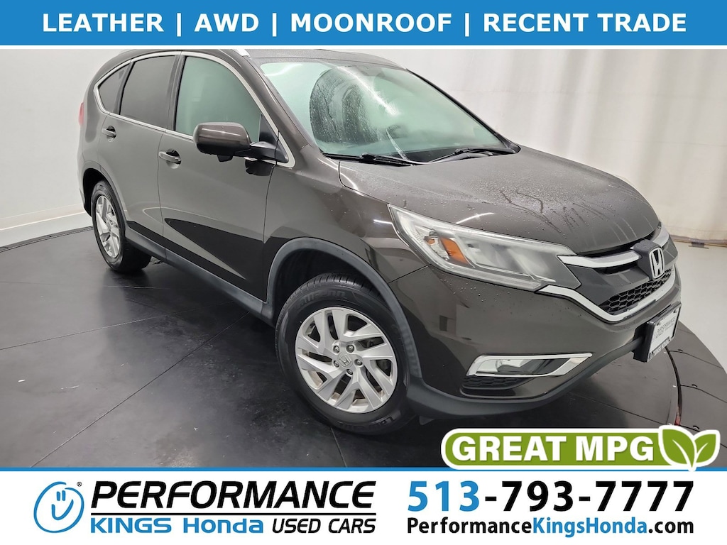 This 2015 Honda CR-V EX-L is loaded with convenient features like: AWD, Backup Camera, Leather, Recent Trade, Moonroof, Heated Seats, Alloy-Wheels, SiriusXM, Fog Lamps, Remote Entry.