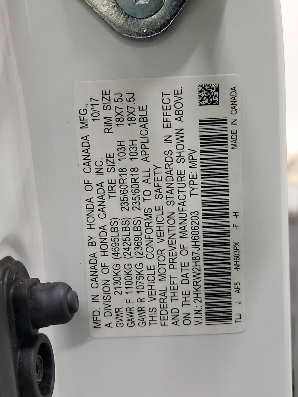 - 2HKRW2H87JH606203
