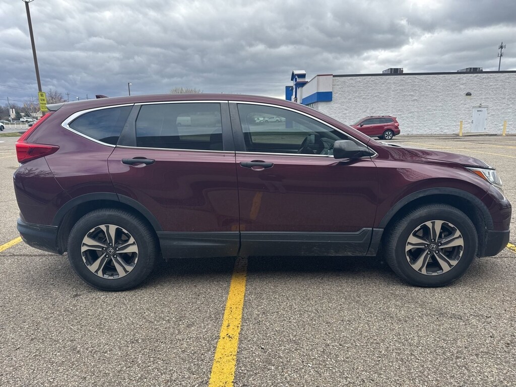 This stunning 2018 Honda CR-V LX features a beautiful Basque Red Pearl Ii exterior and a Gray interior.