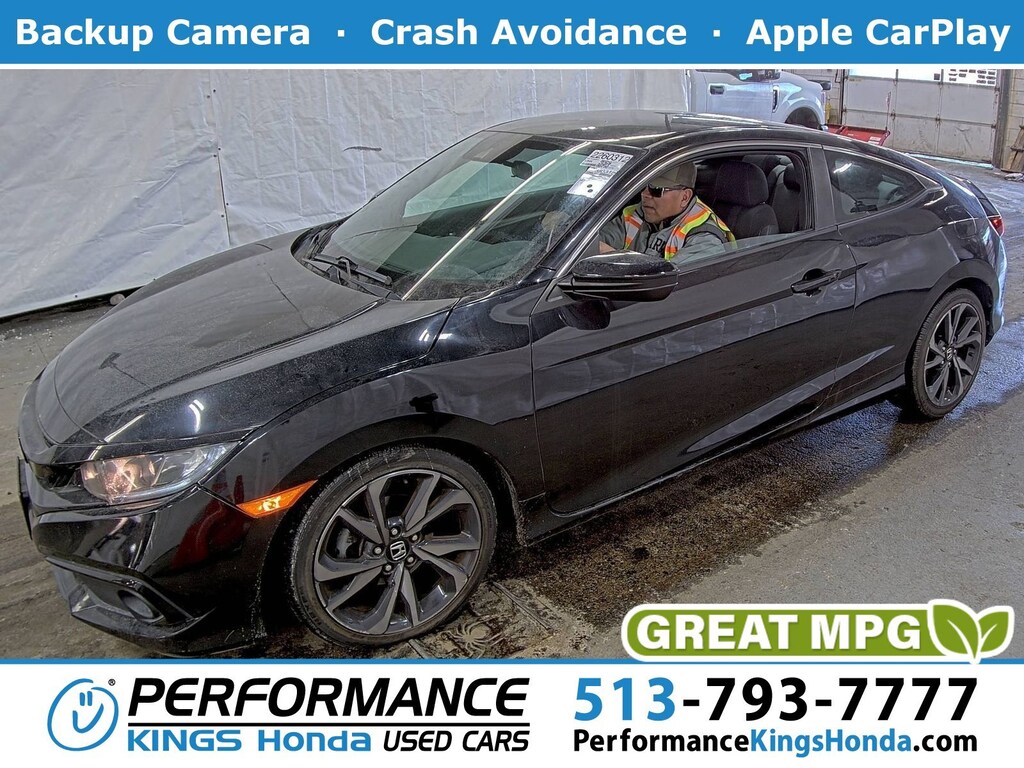 This stunning 2019 Honda Civic Coupe Sport features a beautiful Crystal Black Pearl exterior and a Black interior.