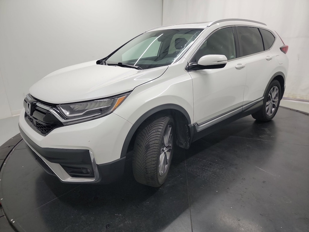 This stunning 2021 Honda CR-V Touring features a beautiful Platinum White Pearl exterior and a Black interior.