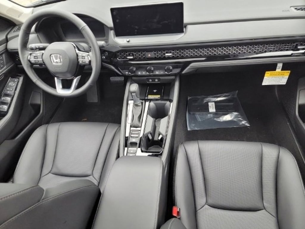 This stunning 2024 Honda Accord Hybrid Touring features a beautiful Platinum White Pearl exterior and a Black interior.