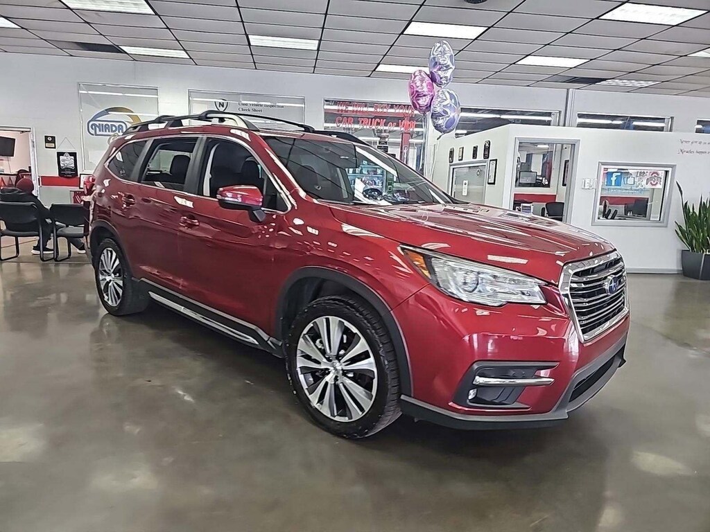 This stunning 2022 Subaru Ascent Limited features a beautiful Crimson Red Pearl exterior and a Slate Black interior.