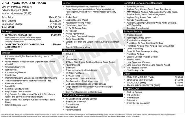 CARFAX One-Owner. Odometer is 15039 miles below market average! 31/40 City/Highway MPG Clean CARFAX. Blueprint 2024 Toyota Corolla SE FWD CVT 2.0L I4 DOHC 16V